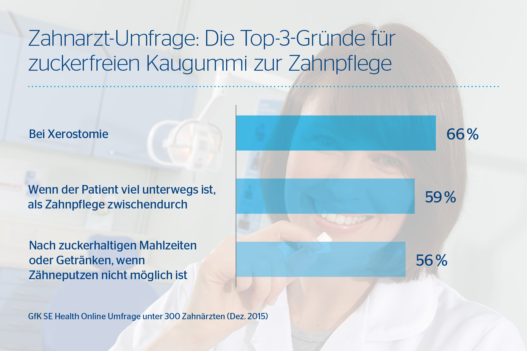 Zahnarzt-Umfrage: Über 50 Prozent empfehlen zuckerfreien Kaugummi - besonders zur Zahnpflege unterwegs